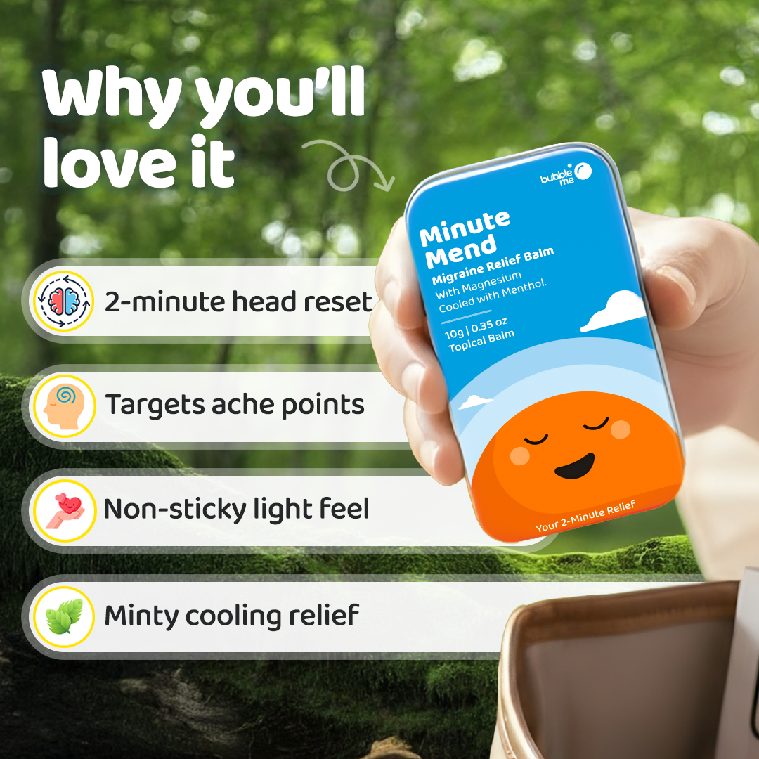 - Minute Mend Migraine Relief Balm: magnesium + cooling menthol