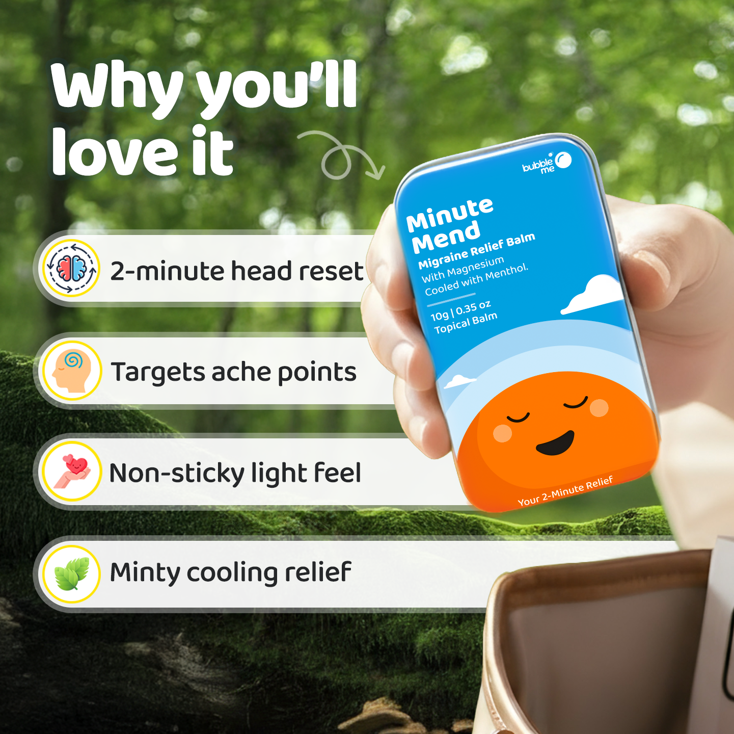 - Minute Mend Migraine Relief Balm: Magnesium + menthol oils