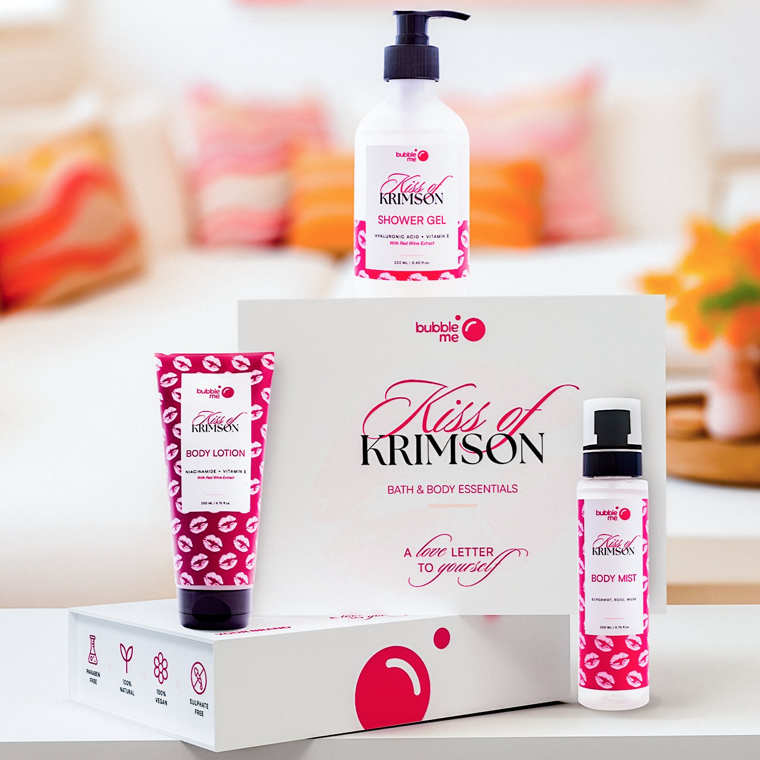 Kiss of Krimson Gift Box | Shower Gel | Body Mist | Lotion | Festive Card