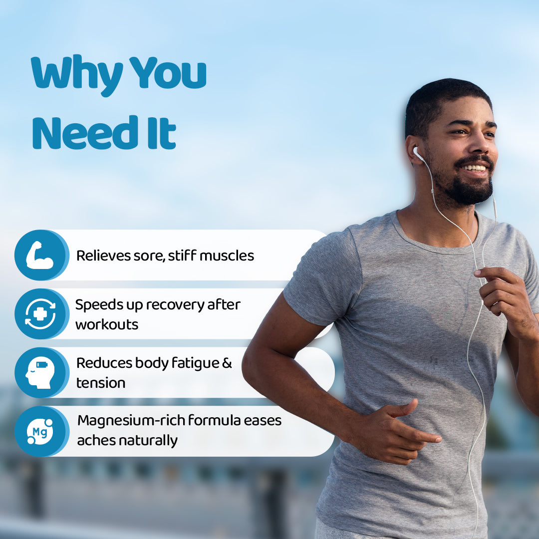 - Epsom Salt replenishes magnesium, helping to relax stiff, sore muscles.