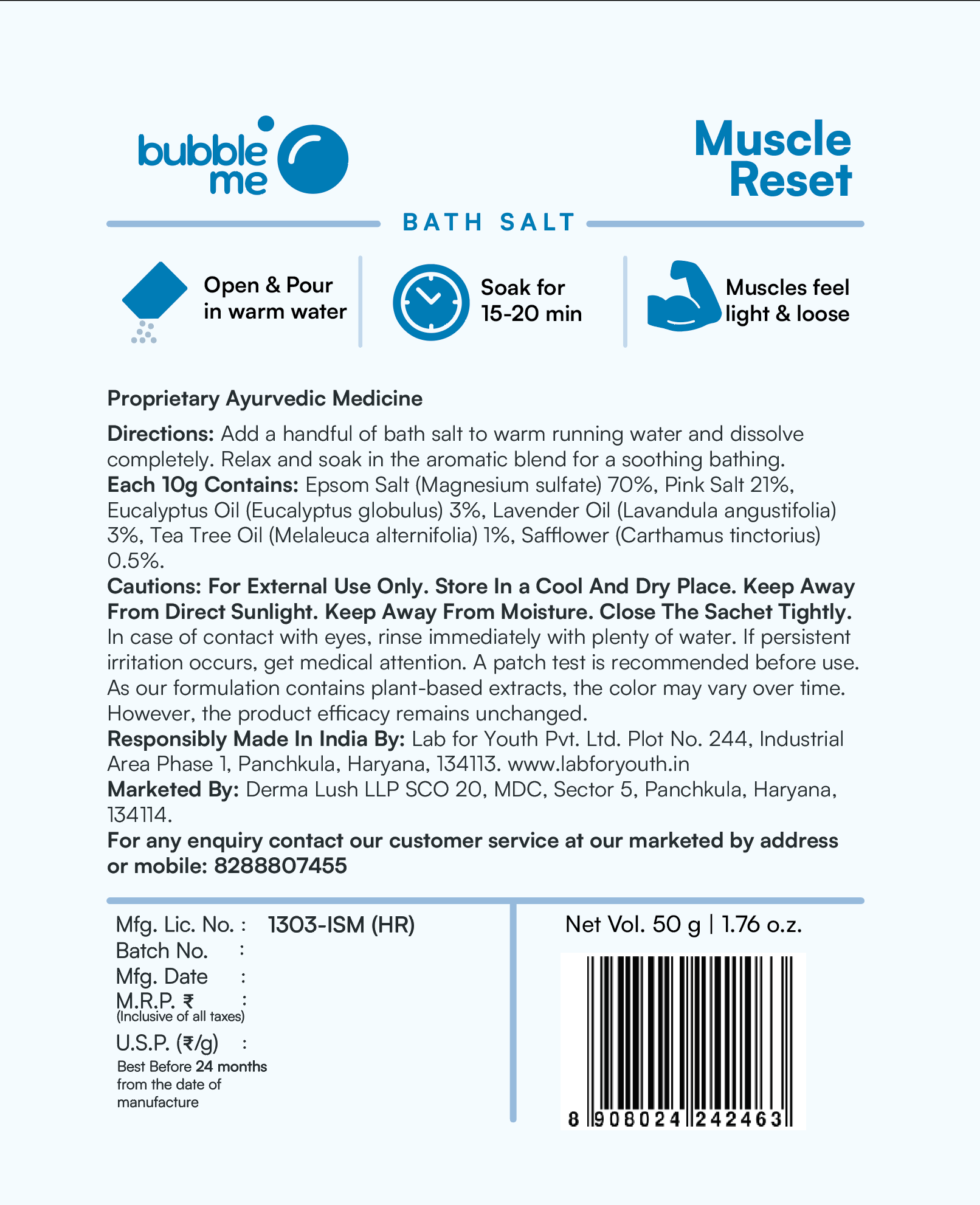 Muscle Reset | Epsom Salt & Eucalyptus-Lavender Blend | Bath Salt Sachet