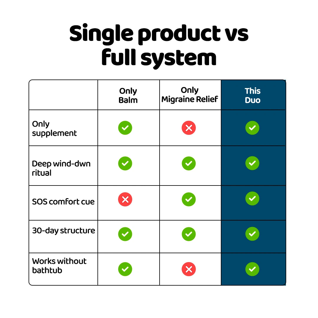 A complete head relief ritual designed to ease headaches, migraines and daily tension. This combo pairs a magnesium-rich bath soak with a cooling balm to help relax the body, reduce stress and provide instant, targeted relief. Thoughtfully put together to help you unwind faster and feel lighter—with an added balm, on us.