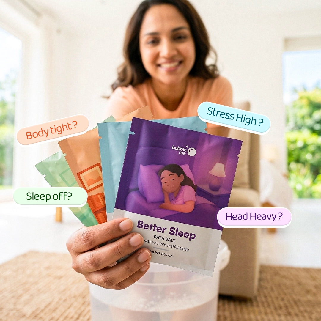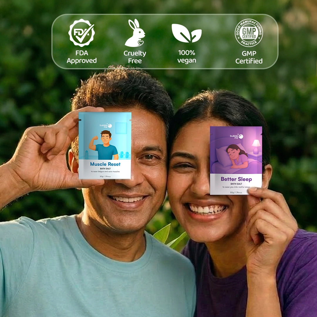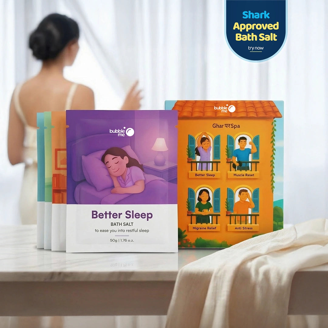 3) Migraine Relief (Peppermint + Eucalyptus + Chamomile): Epsom Salt (Magnesium sulfate), Pink Salt, Lavender Oil (Lavandula angustifolia), Peppermint Oil (Mentha piperita), Eucalyptus Oil (Eucalyptus globulus), Chamomile Oil (Matricaria chamomilla), Blue Corn Flower Herb (Centaurea cyanus), Chamomile Herb (Matricaria chamomilla), Gulab Herb, Vitamin E Acetate (Tocopheryl acetate), Phenoxyethanol, Ethylhexylglycerin.